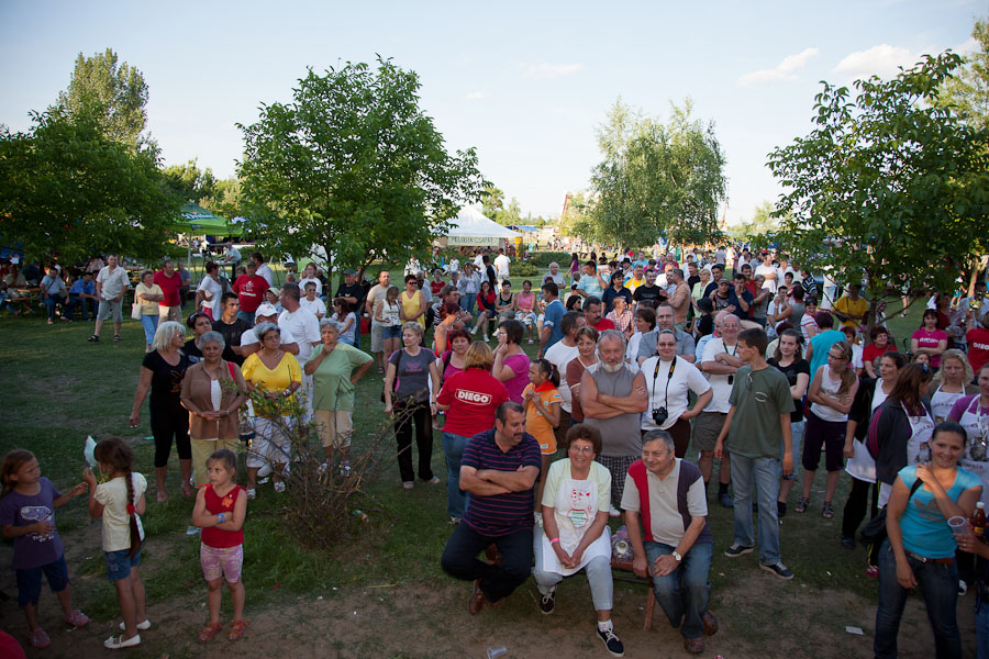 A Rubin Szabadidőközpont hatalmas, füves udvarán megtartott vasárnapi főzőverseny végig kiváló időben zajlott, több ezres látogatói létszámmal. A versenyen induló csapatok száma az elmúlt évihez hasonlóan 50 feletti volt, határon túli indulókkal is. A főzéshez napközben a zenét Kocsis Marci szolgáltatta, majd a színpadi fellépők nyújtottak változatos programot: felléptek a gyomaendrődi hastáncosok, Cibere újabb műsorral jelentkezett, valamint volt tombolahúzás is. A gyerekek kipróbálhatták az udvaron elhelyezett játékokat, megnézhették az állatokat, ill. volt módjuk lovaglásra is. A délután attrakciói közt szerepeltek Uhrin Benedek és Fekete Pákó, akik hatalmas közönséget vonzottak. A két „mester” találkozásáról már cikkeztünk (Pákó és Uhrin Benedek találkozása a Rubin Vendéglőben). ill. videó is készült róluk. Az esti órákban Csocsesz és a Repeta Rock Band szórakoztatta a közönséget.