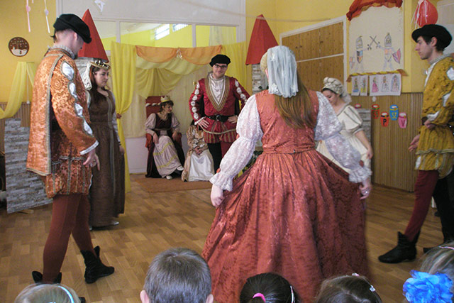 Idén február 20-án tartottuk meg télűző bálunkat, melyre már nagy izgalommal készültek a gyerekek. Reggel a szülők segítségével felöltötték a jelmezüket, majd kezdetét vette csoportokban a felnőttekkel közös vidám délelőtt, ahol a gyerekek és hozzátartozóik önfeledten játszottak. A farsangi fánk elfogyasztása után a Szegedről érkező Pavane Történelmi Tánccsoport varázsolta vissza a gyerekek apraja-nagyját a reneszánsz korba. Ezt követően díszíthettek az ovisok szemüveget, álarcot illetve arcfestésre is sor került.