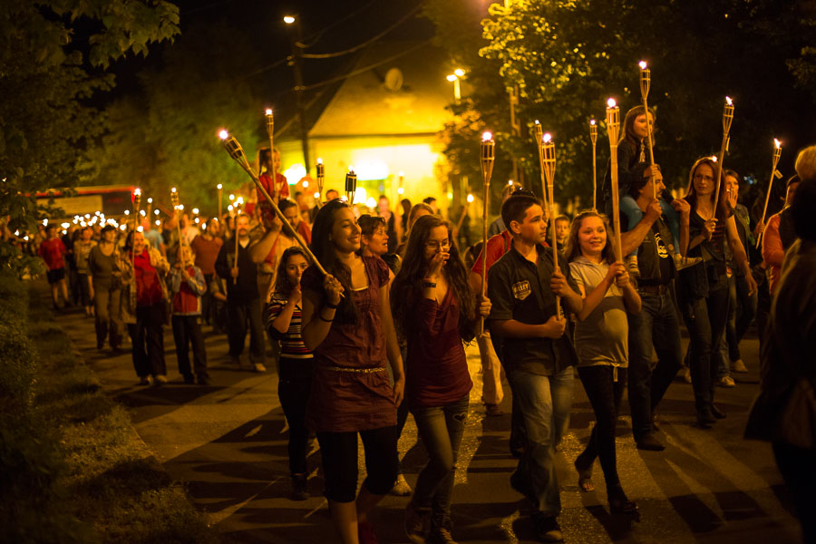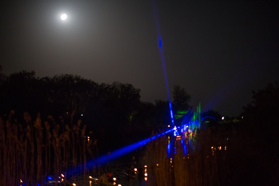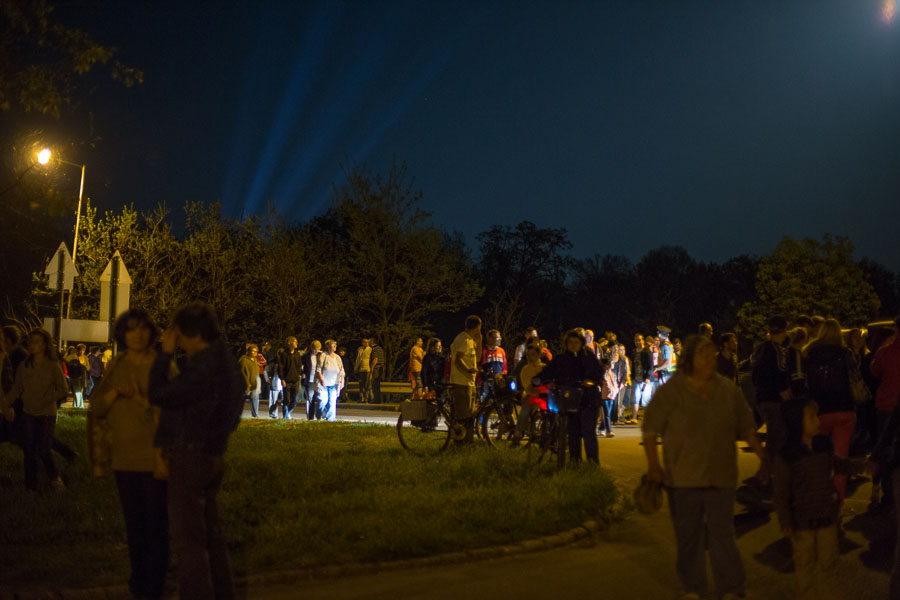 A rendezvény helyszínéről induló fáklyás felvonulás a Révzugi holtág partján, a Járási Hivatal mögött ért véget. A nézők itt gyülekeztek, és várták a lampionos bemutatót.