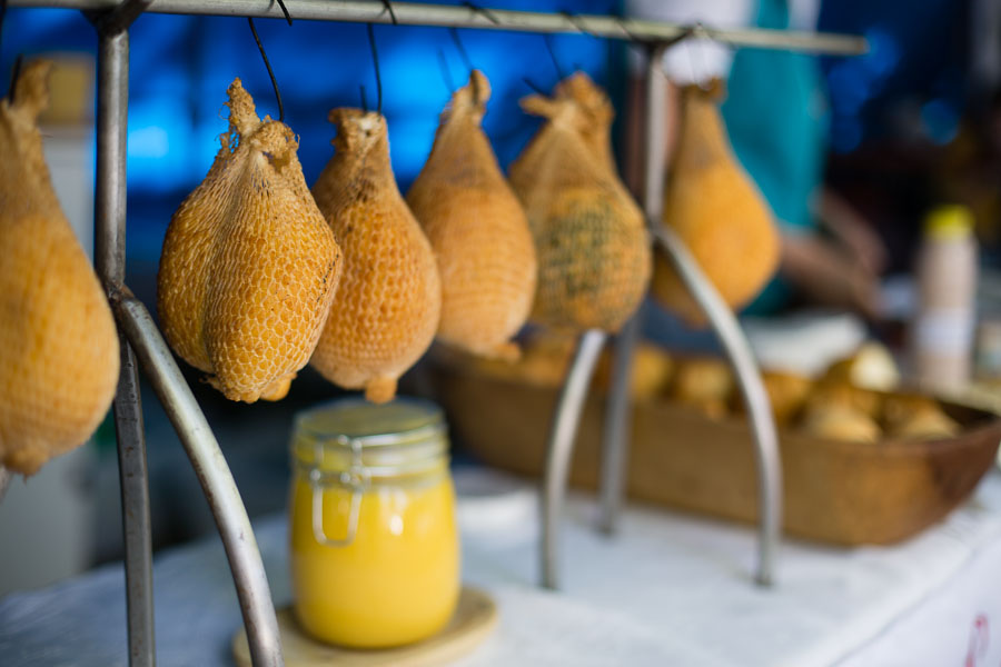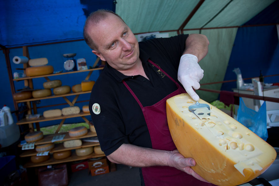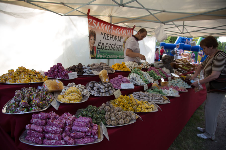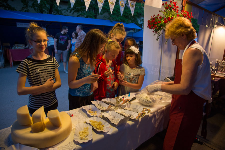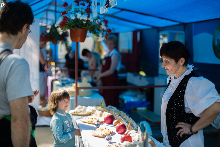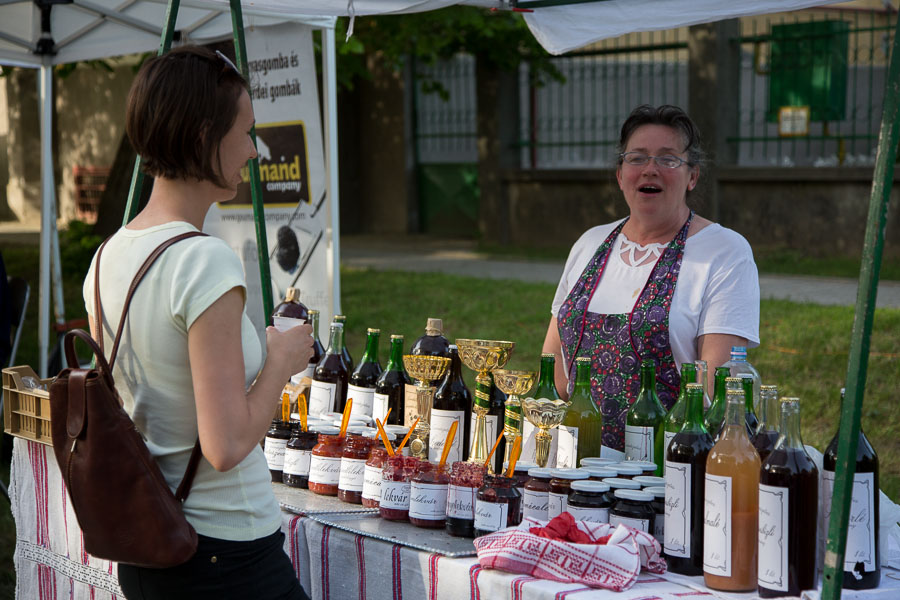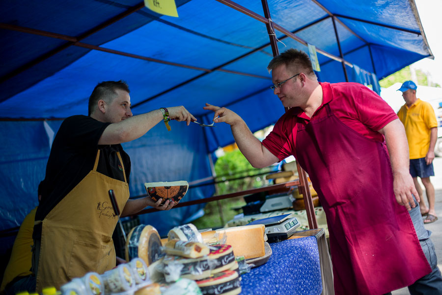 Szombaton kezdetét vette a színes forgatag: talán a tavalynál több árust lehetett látni. A sajtok mellett borokat, pálinkákat, sőt kifejezetten egészségjavító biotermékeket (lekvárokat, gyógynövényes szörpöket, stb.) is lehetett vásárolni. Bár a program szerint méztermelők is kiállítottak, sajnos az elmúlt években kedvencünkké avanzsált Berényi Mézt idén nem találtuk meg.
