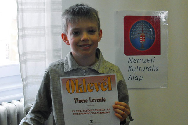 Vincze Levente, a Kis Bálint Általános Iskola és Óvoda 3.b osztályos tanulója 2012. február 23-án a VI. Dél-Alföldi Monda- és Mesemondó Találkozón vett részt.