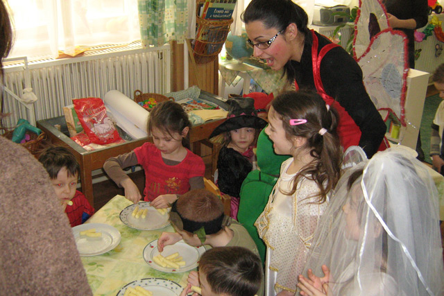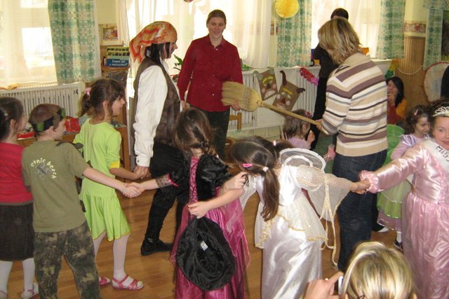 Hagyományunkhoz híven, idén is megrendeztük intézményünkben az egész napos farsangi mulatságot! A gyermekek az óvónénikkel vidám jelmezeket öltöttek és tréfás vetélkedőkön ügyeskedhettek. A báli hangulat elengedhetetlen része volt a maskarákon túl a farsangi fánk, a táncház és az arcfestés. A télbúcsúztatás jegyében, a népi hagyományokat megőrizve, kiszebábot készítettünk és elégettük az udvaron.