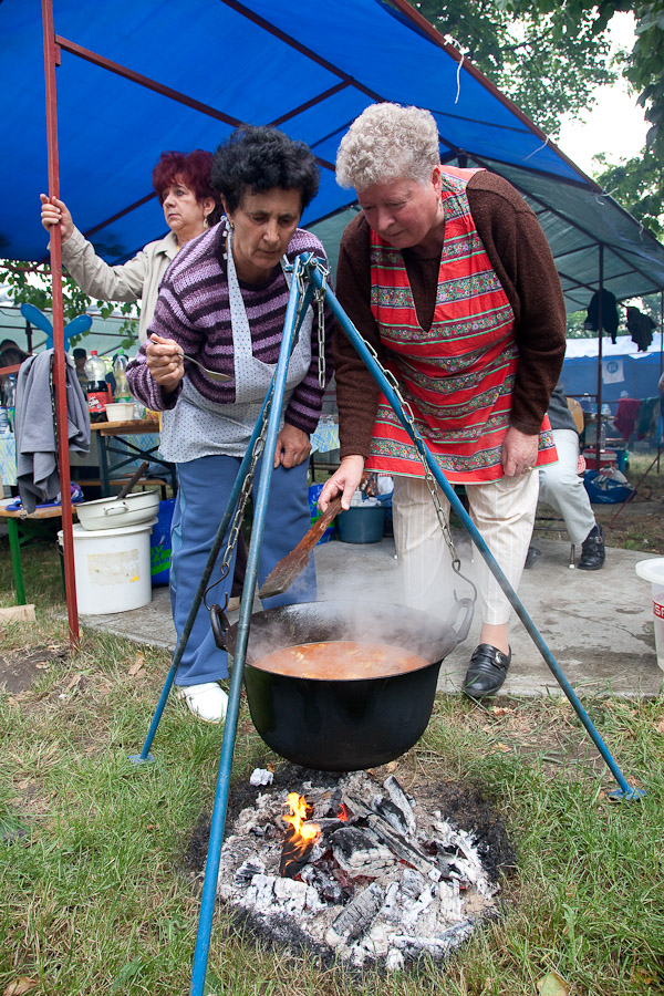 This year’s "Day of the Cauldron" Potato Paprikash Cooking Competition took place on Saturday, May 30, 2009 in an excellent atmosphere. Fortunately, the event held in the courtyard of the Saint Emeric Retirement Home in Öregszőlő (Old Vineyard) wasn’t influenced by bad weather and 1,500-1,600 visitors attended to the location during the day.