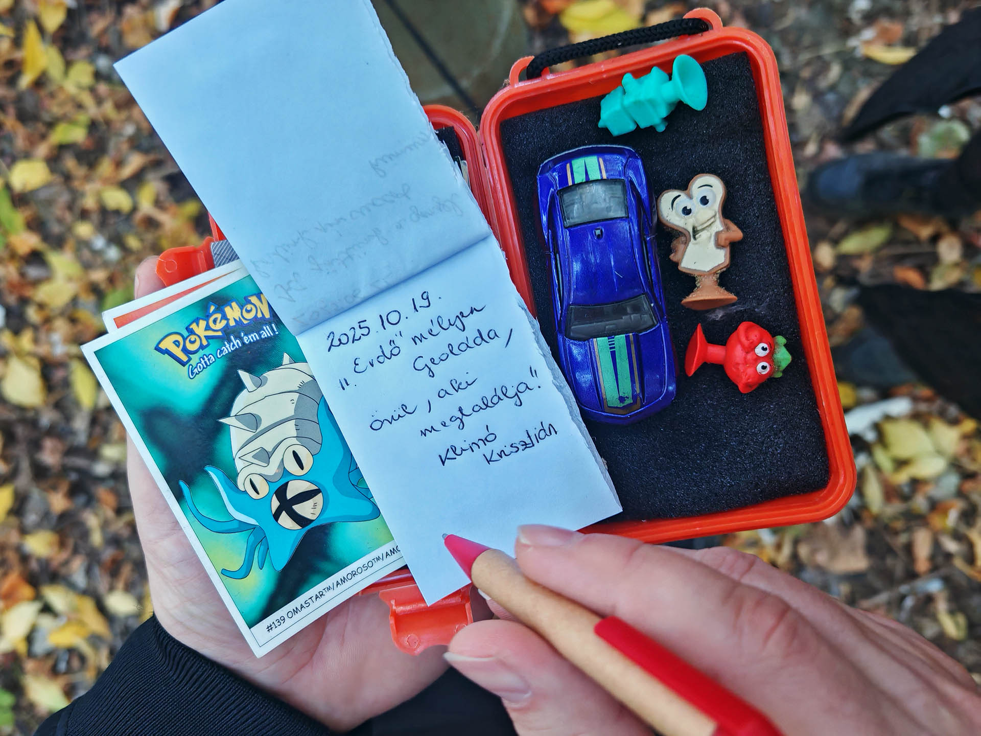 A láda fontos tartalma a napló, melybe minden megtaláló ír általában pár sort az utána érkezőknek.