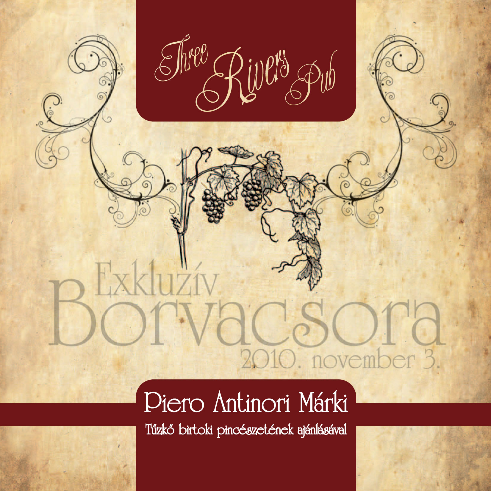 Exkluzív Borvacsora lesz 2010. november 3-án, Piero Antinori Márki Tűzkő birtoki pincészetének ajánlásával.