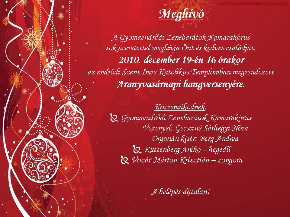 A Gyomaendrődi Zenebarátok Kamarakórus sok szeretettel meghívja Önt és kedves családját,