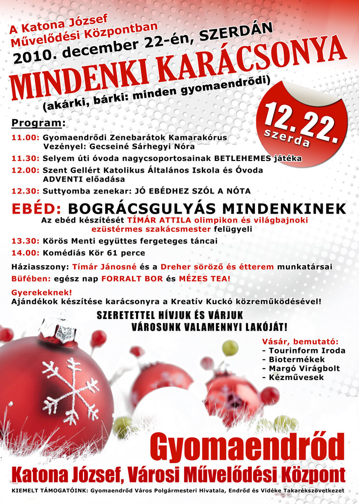 MINDENKI (akárki, bárki: minden gyomaendrődi) KARÁCSONYA